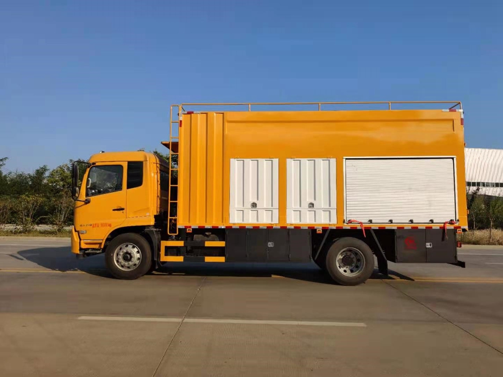 【車輛結構】吸污凈化部分:汽車底盤、廂式結構,內部主要固定裝置為:發電機、真空泵、排污泵、分離箱、污水箱、加藥箱、混凝槽、疊螺機。高壓清洗部分:水箱、柱塞泵、液壓卷盤組成。