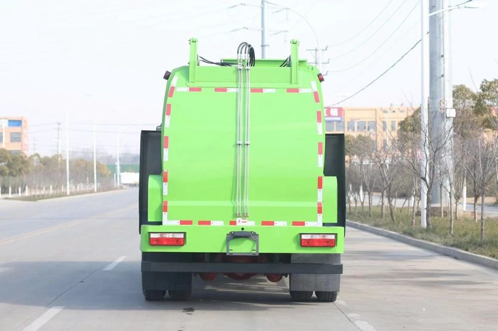 餐廚垃圾車,又稱餐余垃圾車、余廚垃圾車或者泔水車,餐廚垃圾車是垃圾車中的一種,是用于收集和運輸生活垃圾、食品垃圾(泔水)專用車輛。上裝由箱體、后門總成、后門開啟機構、密封鎖緊機構、推板機構、掛桶提升機構及操縱機構等組成。有裝、卸垃圾自動化程度高、工作可靠、密封性好、裝載容積大、操作簡便、作業過程密閉,無污水泄露和異味的散發,環保性好等特點。餐廚垃圾車不僅優化了居民居住的環境衛生,減少了空氣中的餐廚垃圾臭味,減少孳生蟑螂、細菌的可能, 改善了環衛作業環境,減少垃圾的四處分散造成的污染。