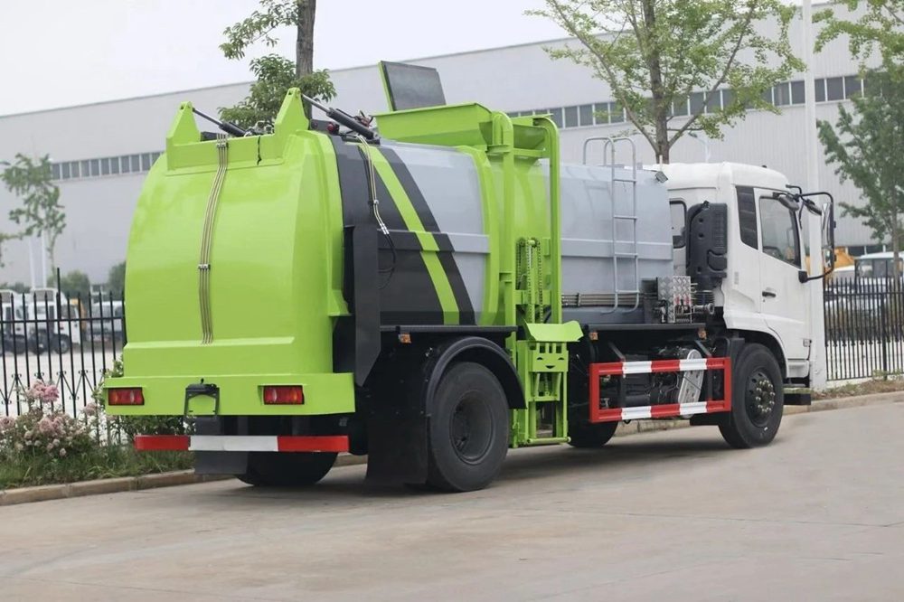 餐廚垃圾車,又稱餐余垃圾車、余廚垃圾車或者泔水車,餐廚垃圾車是垃圾車中的一種,是用于收集和運輸生活垃圾、食品垃圾(泔水)專用車輛。上裝由箱體、后門總成、后門開啟機構、密封鎖緊機構、推板機構、掛桶提升機構及操縱機構等組成。有裝、卸垃圾自動化程度高、工作可靠、密封性好、裝載容積大、操作簡便、作業過程密閉,無污水泄露和異味的散發,環保性好等特點。餐廚垃圾車不僅優化了居民居住的環境衛生,減少了空氣中的餐廚垃圾臭味,減少孳生蟑螂、細菌的可能, 改善了環衛作業環境,減少垃圾的四處分散造成的污染。