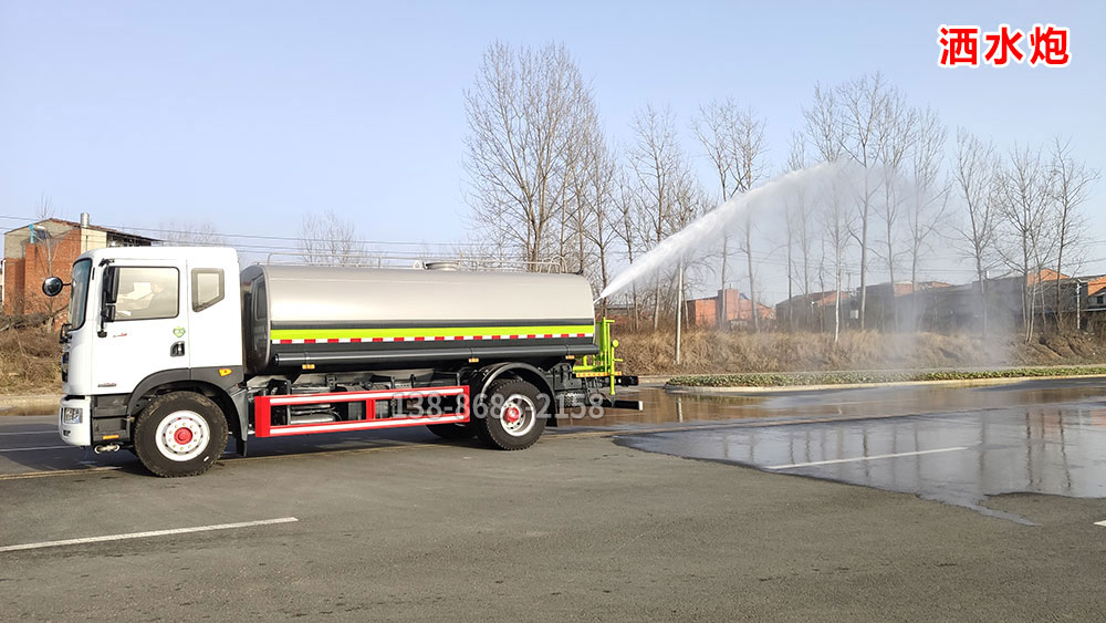 【選裝配置】20米綠化卷盤或藥泵,氣動閥控制噴灑球閥,低水位報警,LED大號箭頭燈,罐內(nèi)防腐,罐體保溫,不銹鋼管道、球閥、灑水泵、灑水炮、罐體。